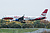 Справа хвост "ВладивостокАвиа" выглядывает, он там тоже садится, что ли, судя по высоте над землёй? Не опасно вот так сажать самолёты на пересекающиеся полосы? | ||||||||