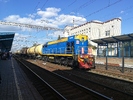 Подскажите пожалуйста, как так получается, что у локомотива, сфотографированного на Украине и с украинской символикой, оказывается российская прописка? Спасибо! | ||||||||